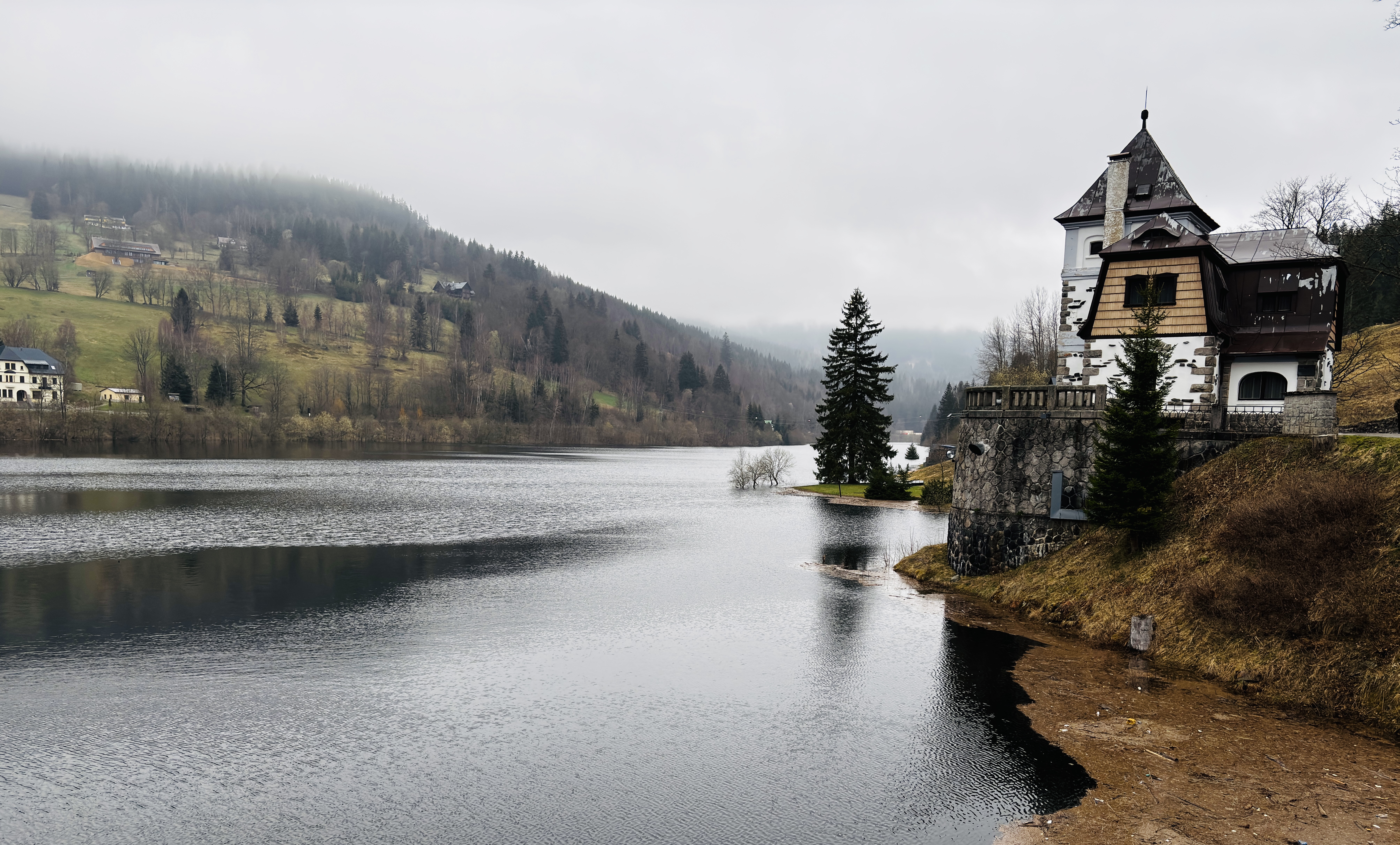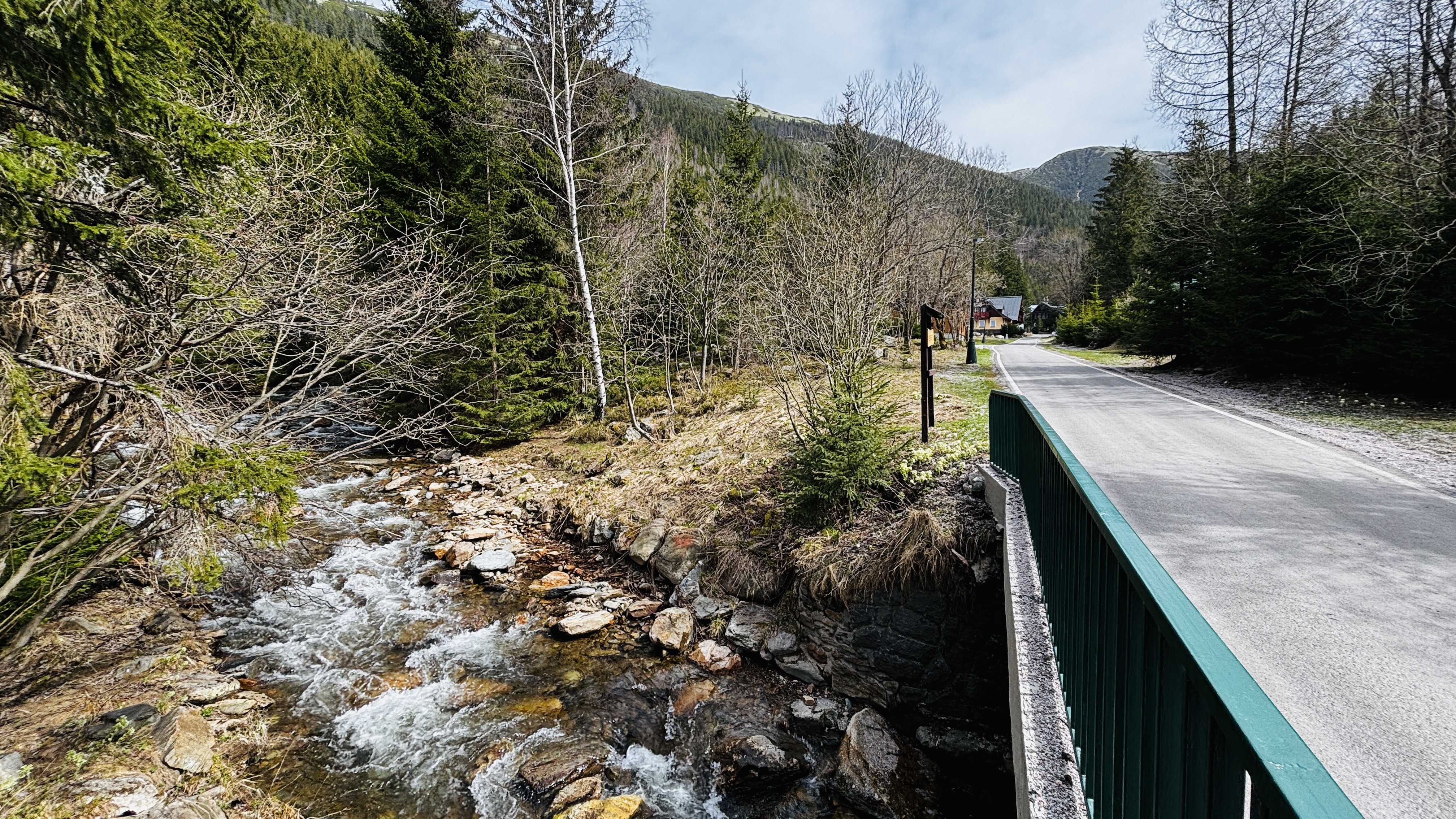 From the house, head towards the center and turn left at the Martin Hotel onto a forest path along the stream, past the Sv. Petr ski resort and along Lyžařská Street along the green trail to the dam. You can return the same way.